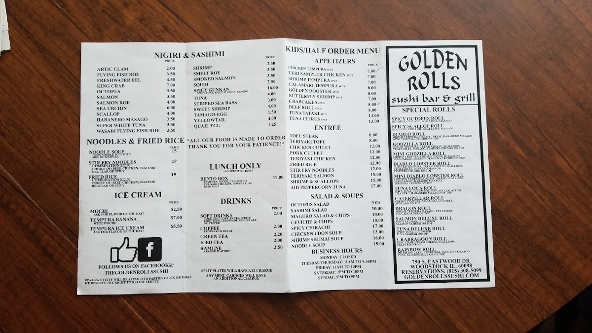 For those craving bolder flavors, the special rolls stand out, with items like Spicy Octopus Roll, Spicy Scallop Roll, Diablo Roll, Godzilla Roll, and Mini Godzilla Roll, each suggesting layered textures and stronger seasoning. The “Others” category further expands the experience with creative combinations such as Cancun Roll, Salmon Skin Roll, Boston Roll, Spicy Salmon Roll, and Crazy Roll, rounding out the selection with both classic and inventive options. Overall, the menu at Golden Rolls feels cohesive and thoughtfully curated, offering enough variety to satisfy first-time visitors while still giving regulars plenty to explore, making it a strong and memorable conclusion to the dining experience.